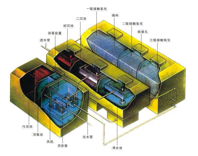 7、生化池采用生物接觸氧化法,其填料的體積負(fù)荷比較低,微生物處于自身氧化階斷,產(chǎn)泥量少,僅需3十月以上排 一次泥(用糞車抽吸或脫水成泥餅外運(yùn))。