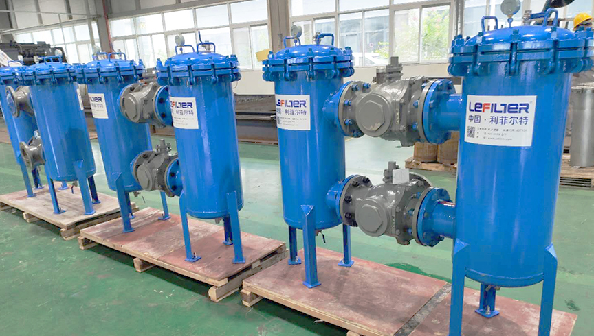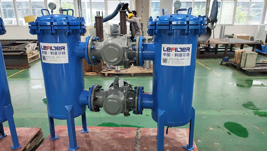 雙聯(lián)過濾器又稱并聯(lián)雙切換過濾器,是由兩只單筒過濾器及全通徑三通球閥組成,結(jié)構(gòu)簡單,使用方便,以達到保證系統(tǒng)安全的目的。 在工作過程中,單筒過濾器濾芯堵塞到一定程度需清洗或更換濾芯時,要停止主機工作來更換濾芯,這樣不僅浪費時間更不能滿足主機連續(xù)工作的需要,雙筒過濾器有效地解決了單筒過濾器這方面的缺點,在不停機的情況下可清洗或更換濾芯來保證主機正常連續(xù)工作。